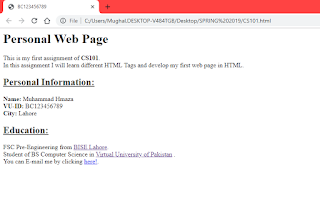 Write your name under subheading (Personal Information 🙂 along with your VU-ID and city.