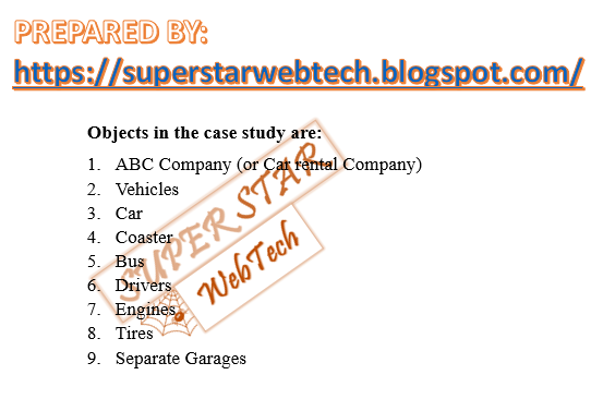 Suppose ABC is a car rental company. To facilitate all type of customers the company bought different types of vehicles like car, coaster and bus for their drivers. These vehicles are composed of best engines and tires. Company will also keep these vehicles in separate garages to protect it from any damage.