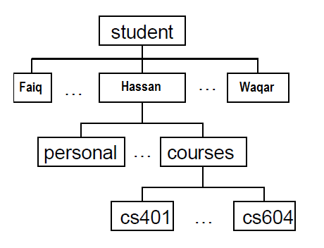 The following figure shows the directory structure in a UNIX/Linux system. Suppose, user Hassan has a subdirectory named courses under his home directory. This directory contains subdirectories for the courses that he has taken i.e. (CS401 and CS604).