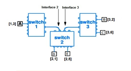 Following figure shows that different devices are attached with switches (1, 2 and 3). You are required to complete the entries for the Next Hop in the given table.