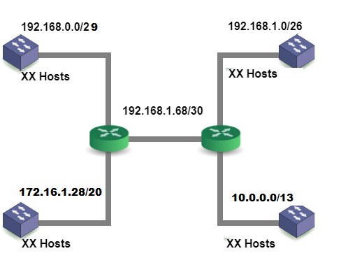 Following diagram has four subnets of different IP classes that are connected via WAN link. You are required to find maximum number of useable host that each subnet can accommodate. Write your answer in given table: