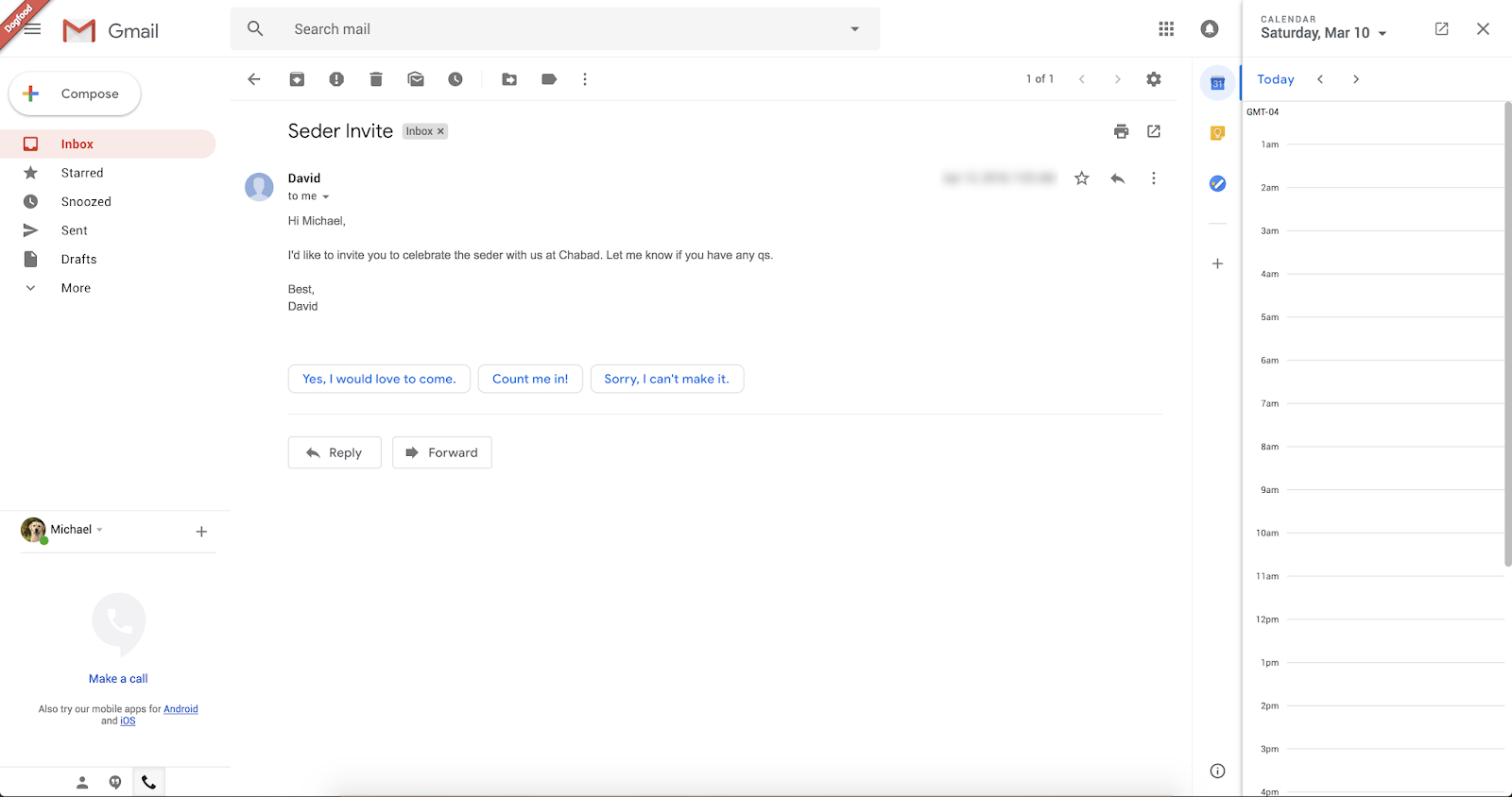 👉Gmail mobile app Users are familiar with “Smart reply” feature. And is now going to be on the Gmail’s web service. As you can see on the screenshot, Gmail will suggest smart replies as it works in mobile apps. And the most fascinating part is the column on right hand side. This expansible nook let you open other gadgets like Calendar, Daily tasks, Keep notes etc.