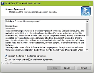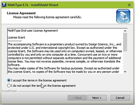 ➽ Accept the MathType End-user license agreement. and click Next >