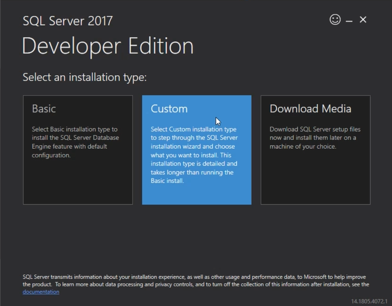 Run the setup SQLServer2017-SSEI-Dev.exe As Administrator