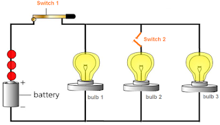 - When switch 1 is ON and switch 2 is directly connected without bulb (short)